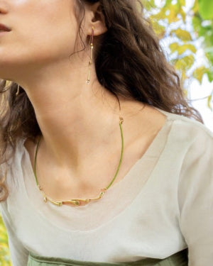 È da quel soffio che è nata Disamara: una collezione essenziale e poetica, dove il filo sottile della seta pura si intreccia a metalli e gemme, trasformando il concetto di gioiello in un volo leggero, colorato e unico.