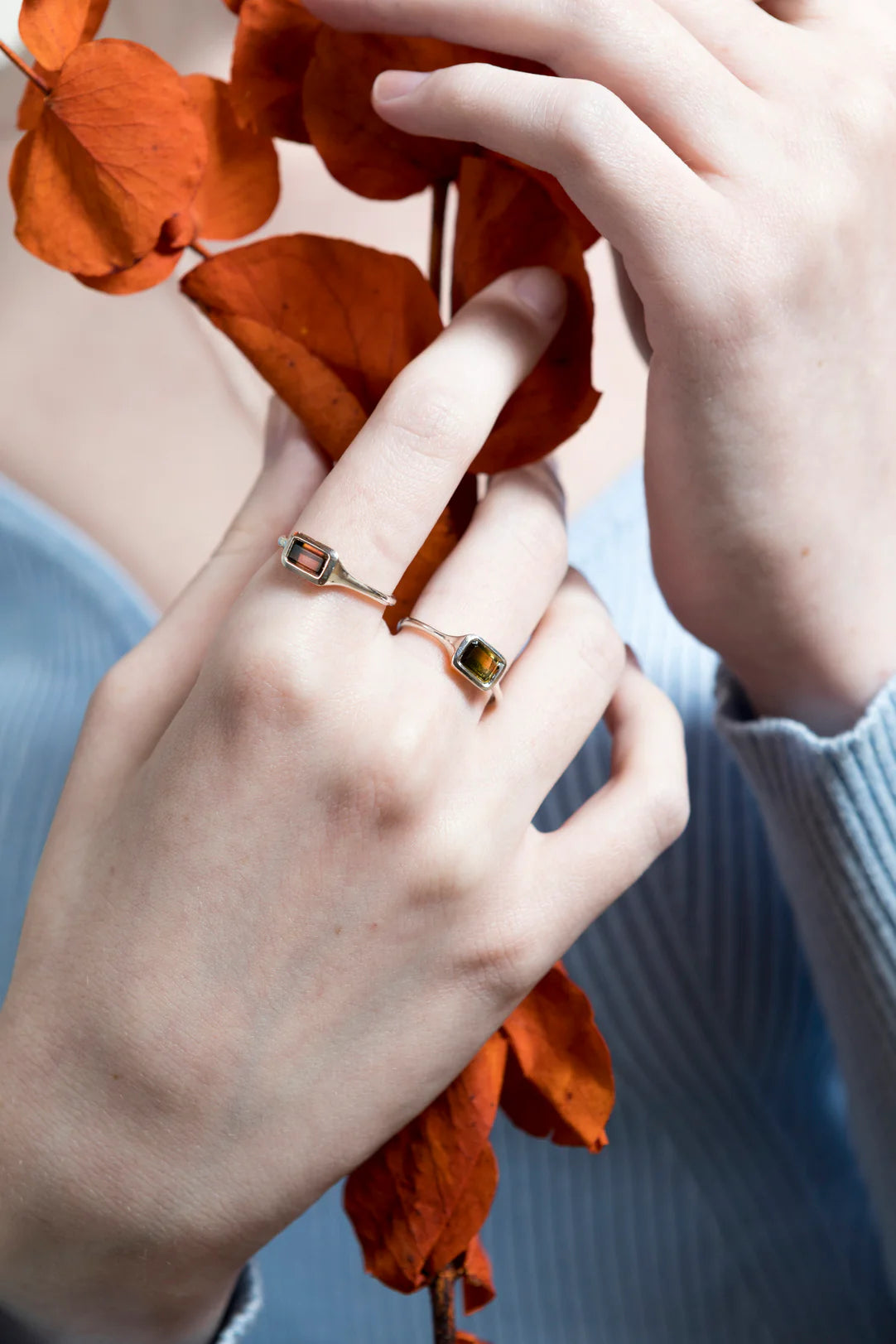 Anello solitario con tormalina bi-colour taglio baguette, realizzato in argento 925 Fairmined con la tecnica della cera persa. Perciò la forma è stata prima modellata in una cera apposita per poi passare nelle mani del fonditore, il quale ha realizzato uno stampo negativo in gesso, che una volta cotto ha fatto sì che la cera “andasse persa” e venisse sostituita dal metallo fuso. Questa fusione ha poi subito tutti i passaggi di rifinitura, dallo spiantonamento, alla carteggiatura, incastonatura a battuto e finitura lucida e satinata .