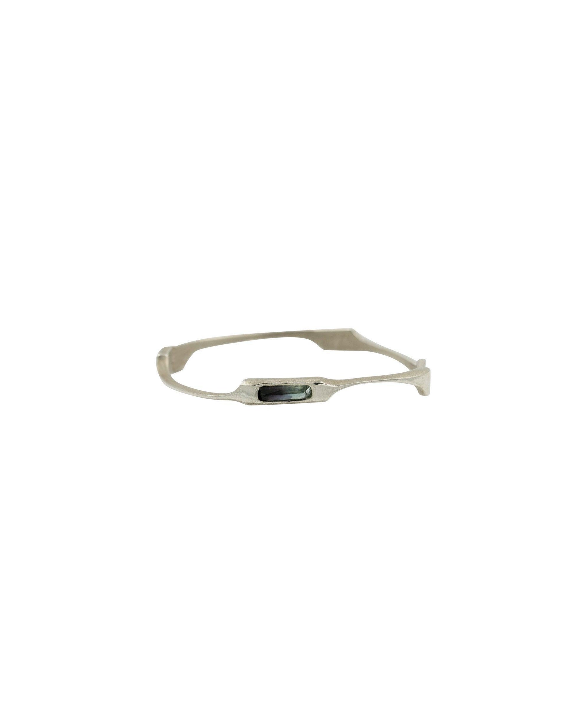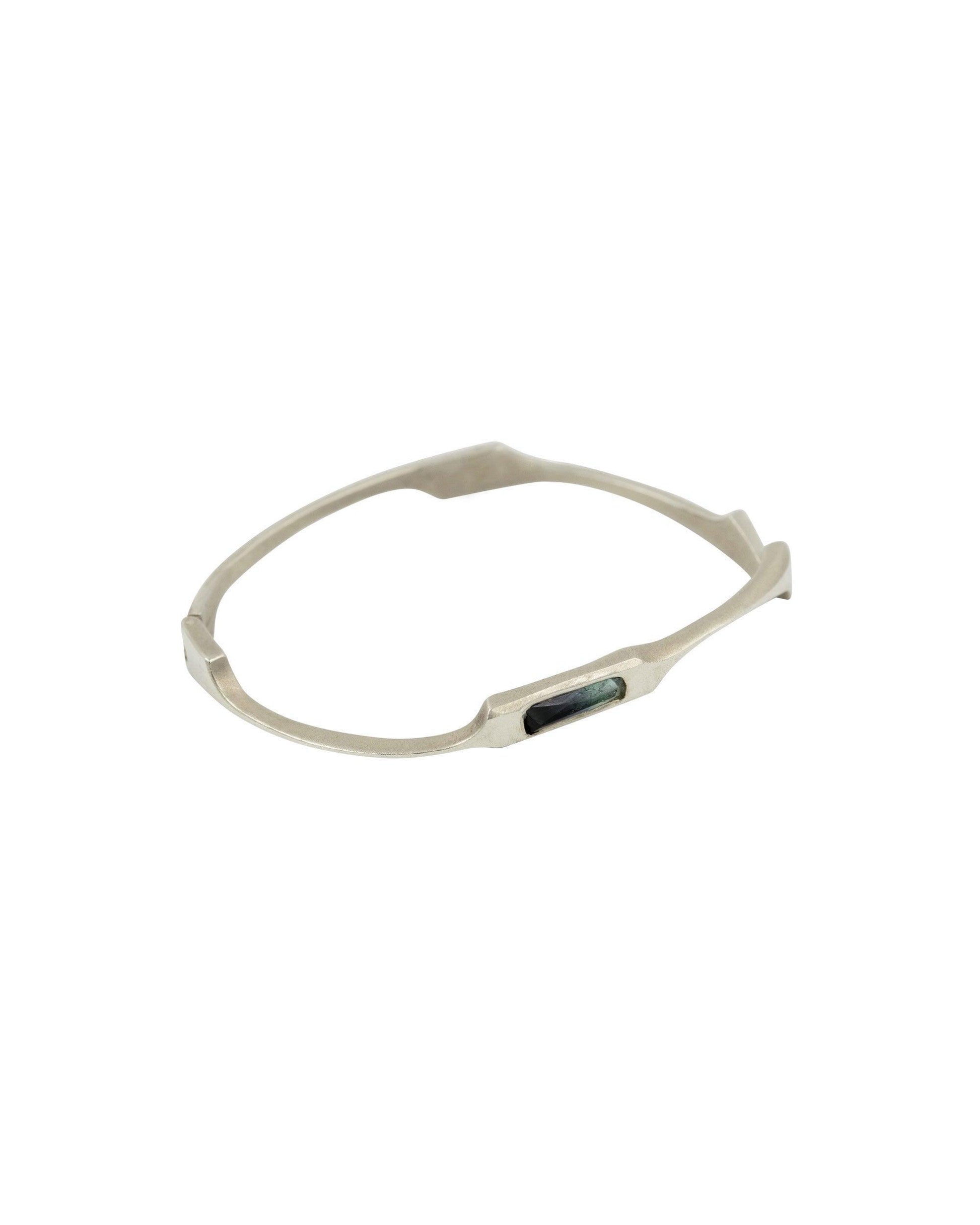 Bracciale rigido snodato in argento 925 con tormalina verde ottanio