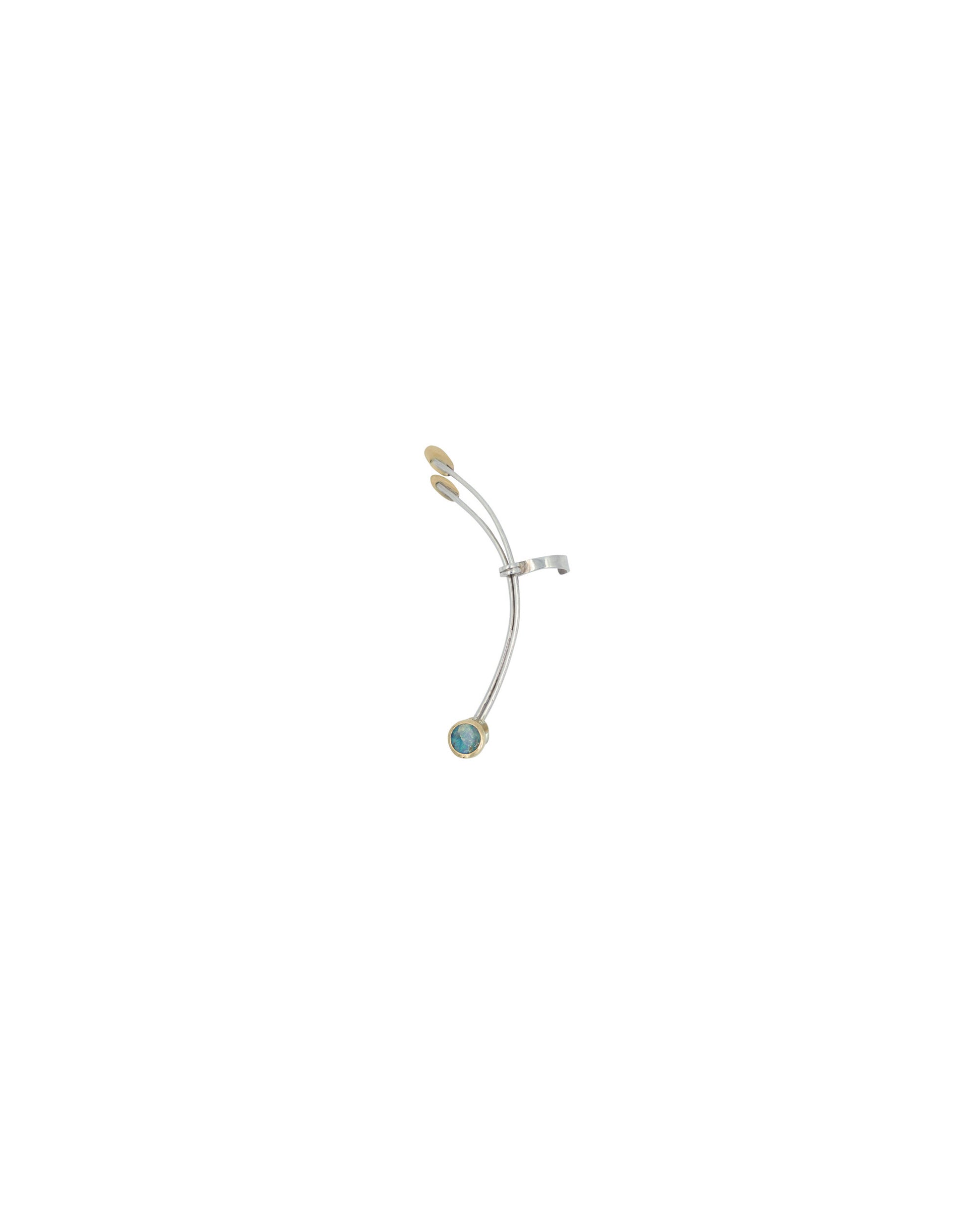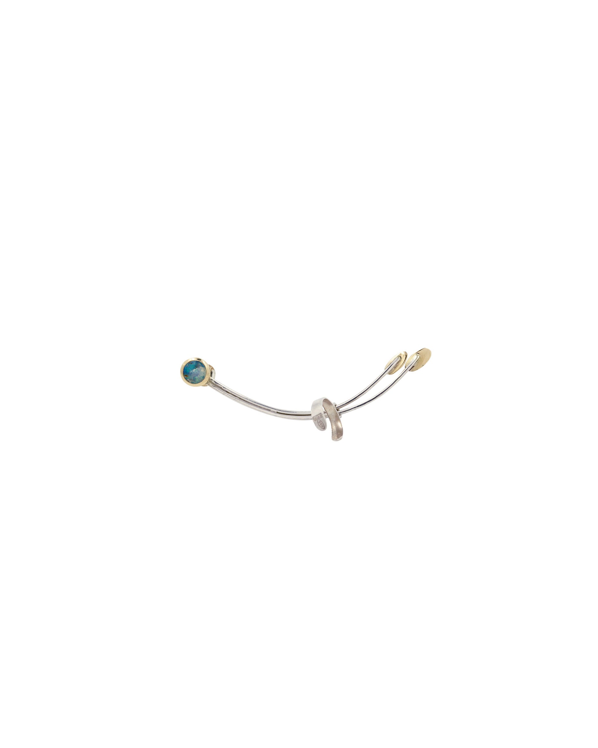 Questi orecchini sono molto particolari, realizzati in argento e oro 9kt certificati Fairmined con splendidi opali Boulder. La loro caratteristica è che una volta inserito il perno nel foro, la restante parte va agganciata all’orecchio come un ear cuff, decorando interamente l’orecchio