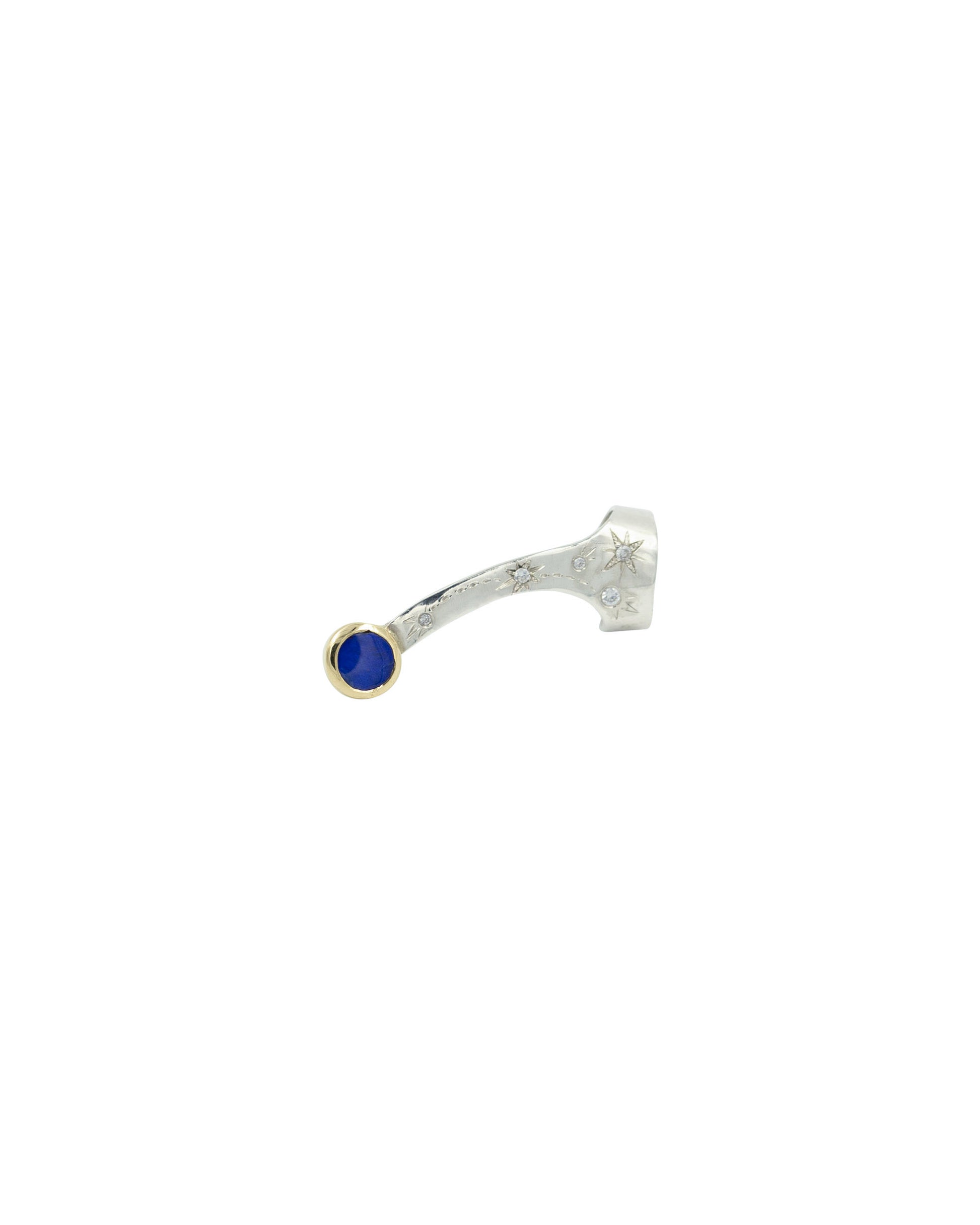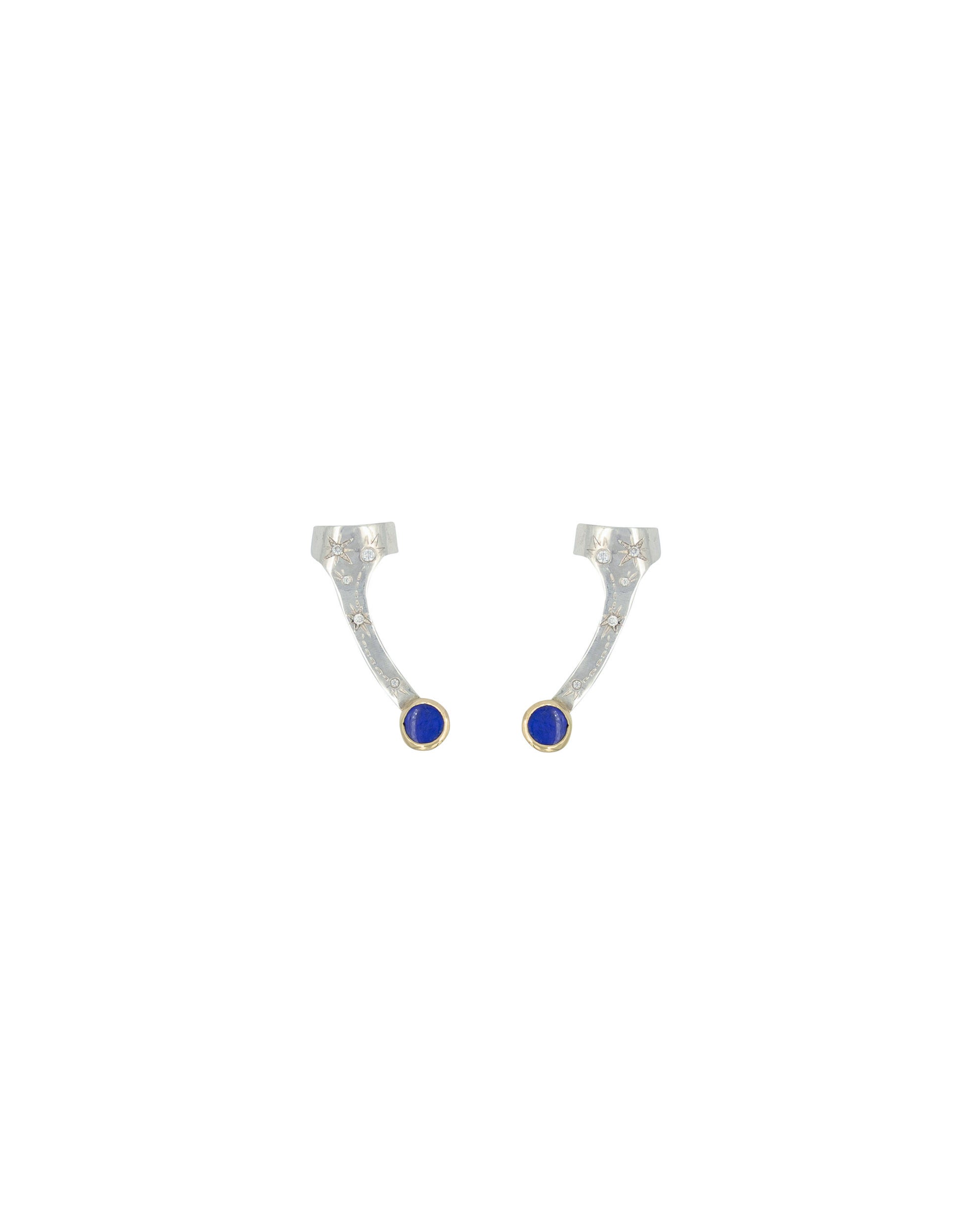 Questi orecchini sono molto particolari, realizzati in argento e oro 9kt certificati Fairmined incisi a mano e con splendidi opali Boulder. La loro caratteristica è che una volta inserito il perno nel foro, la restante parte va agganciata all’orecchio come un ear cuff.