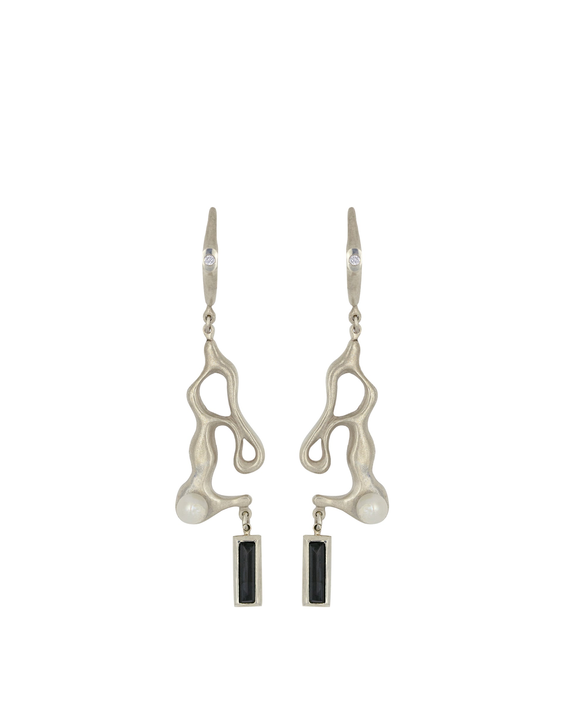 un pezzo unico realizzati in argento 925 Fairmined con perle keshi di coltura sostenibile e tormaline blu e due piccole sintesi di zircone color tanzanite.